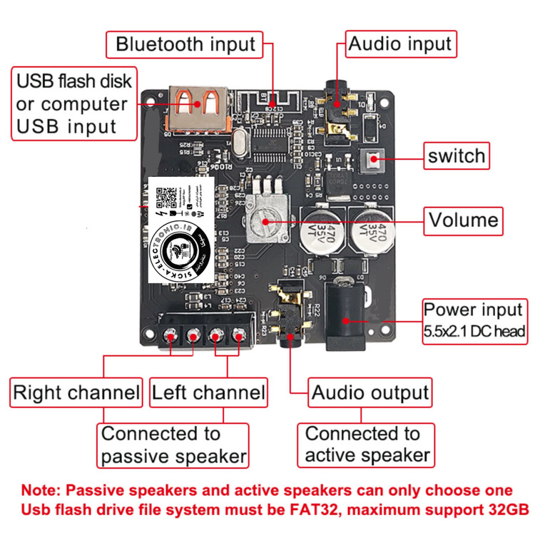 - اسپیکر مناسب: 20W-200W 4Ω یا 8Ω