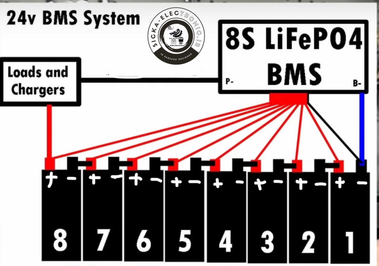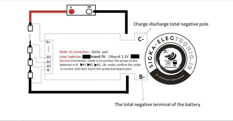 تصویر راهنما اتصال باتری های لیتیوم فسفات به برد
