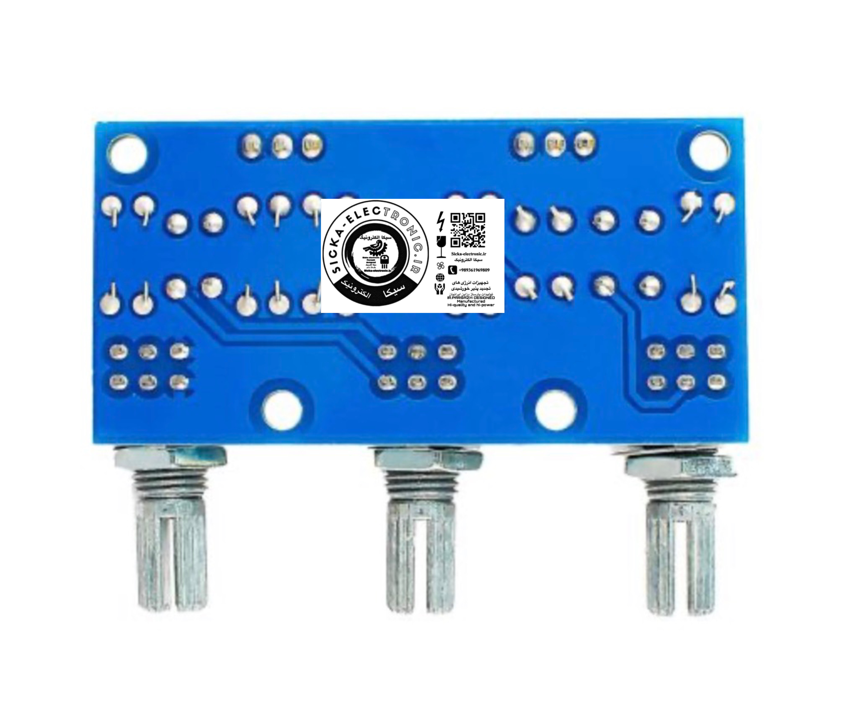 یک برد تن کنترل پسیو است که برای تنظیم فرکانسهای بالا و پایین ورودی سیگنال صوتی به کار میرود. این ماژول از طریق فیلتر RC و بدون نیاز به منبع تغذیه کار میکند و قادر است صدای زیر و بم را از طریق خازن RC تنظیم کرده و سپس به برد آمپلی فایر ارسال کند. در نظر داشته باشید که به دلیل ماهیت پسیو بودن، حجم صدای خروجی پس از پردازش کمتر از حالت عادی خواهد بود. این ماژول گزینهای عالی برای علاقهمندان به HiFi و تنظیمات صوتی دستی است.