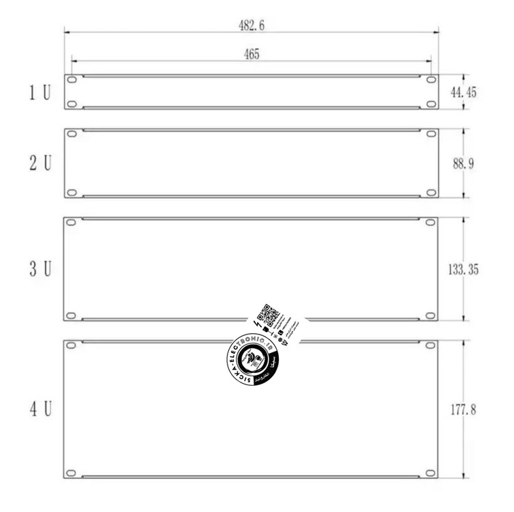 تجهيزاتى كه از لحاظ ابعاد معادل ابعاد تعيين شده زيرباشند، قابل نصب در رك بوده واصطلاحا به آنها ركمونت ( Rack Mount ) مى كويند.