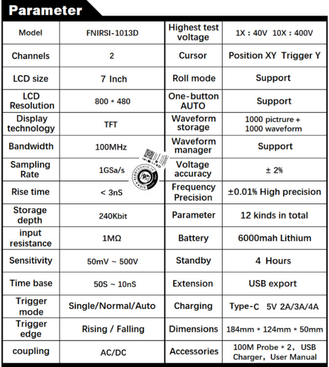 مشخصات فنی اسیلوسکوپ FNIRSI مدل 1013D