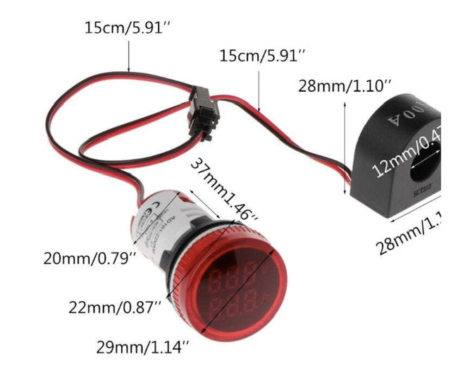 ولتمتر آمپر متر AC پنلی ۱۰۰ آمپر و تا ۵۰۰ ولت AC /کیفیت بالا معروف به طرح سامسونگ/سبز.قرمز