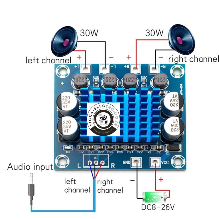 30W+30W 2.0 CHANNEL DIGITAL STEREO AUDIO POWER AMPLIFIER BOARD DC 8-26V 3A
