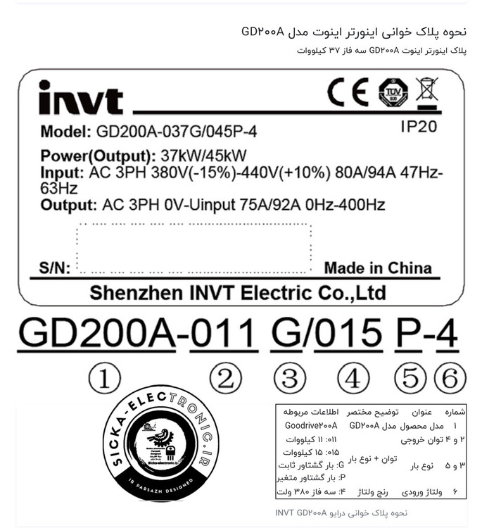| ظرفیت اضافه بار با توجه به نوع بار (بار گشتاور ثابت، بار گشتاور متغیر) | نوع بار G: گشتاور ثابت قابلیت تحمل اضافه بار تا: 150 درصد جریان نامی به مدت 1 دقیقه 180 درصد جریان نامی به مدت 10 ثانیه 200 درصد جریان نامی به مدت 1 ثانیه نوع بار P: گشتاور متغیر قابلیت تحمل اضافه بار تا: 120 درصد جریان نامی به مدت 1 دقیقه 180 درصد جریان نامی به مدت 10 ثانیه |