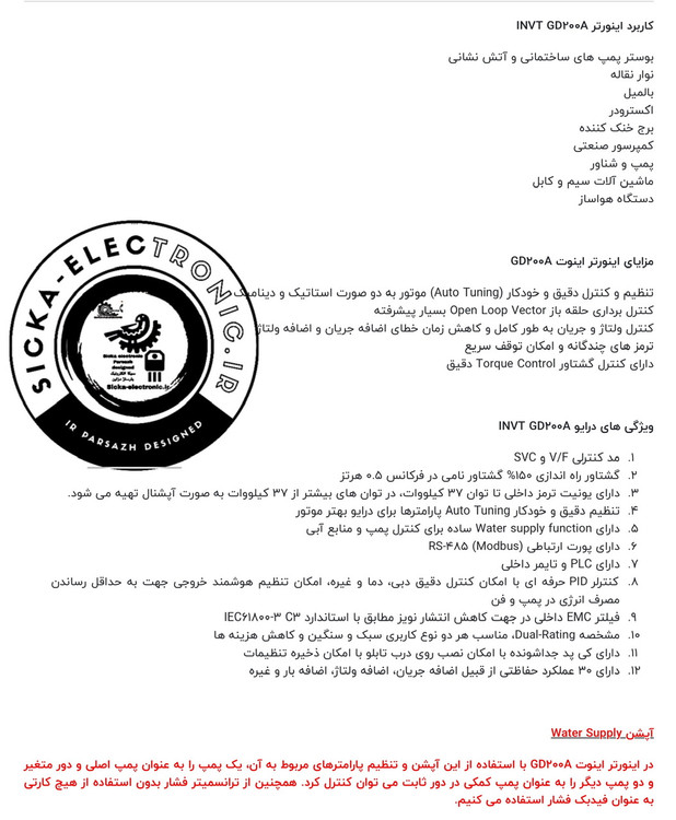 در اینورتر اینوت GD200A با استفاده از این آپشن و تنظیم پارامترهای مربوط به آن، یک پمپ را به عنوان پمپ اصلی و دور متغیر و دو پمپ دیگر را به عنوان پمپ کمکی در دور ثابت می توان کنترل کرد. همچنین از ترانسمیتر فشار بدون استفاده از هیچ کارتی به عنوان فیدبک فشار استفاده می کنیم.