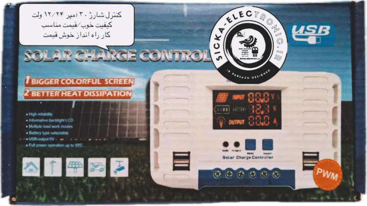 کنترل شارژ ۳۰ آمپر باکیفیت ،قیمت مناسب و ال سی دی رنگی/متفاوت با جنس چینی معمول و مشابه در بازار /۳۰ آمپر تکنولوژی pwm charger/دیجیتال /کنترل شارژ خورشیدی ۳۰ آمپر/کار راه انداز قیمت مناسب