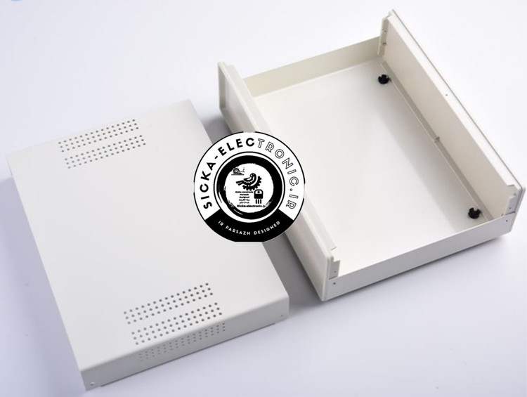 باکس الکترونیکی فلزی با پنل پلاستیکی (سفید یا مشکی با توجه به موجودی) سایز ۲۵ سانتی متر در ۲۸ سانتی متر در ۸ سانتی متر /کیفیت بسیار خوب رنگ و تولید /باکس مناسب اتواع پروژه های الکترونیکی،منبع تغذیه،آمپلی فایر،اینورتر،تغذیه و ...