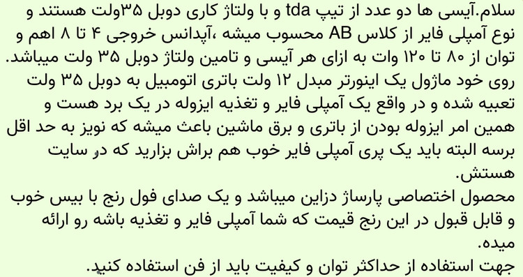نیمه حرفه ای و حرفه ای/دقت داشته باشید این ماژول از ترکیب یک اینورتر مبدل برق و دو آمپلی فایر ساخته شده و اتصالات بلندگو بادقت و از پری آمپلی فایر یا ماژول بلوتوث با کیفیت با اتصالات شیلد باید استفاده کنید و از قدرت و کیفیت صدا لذت ببرید