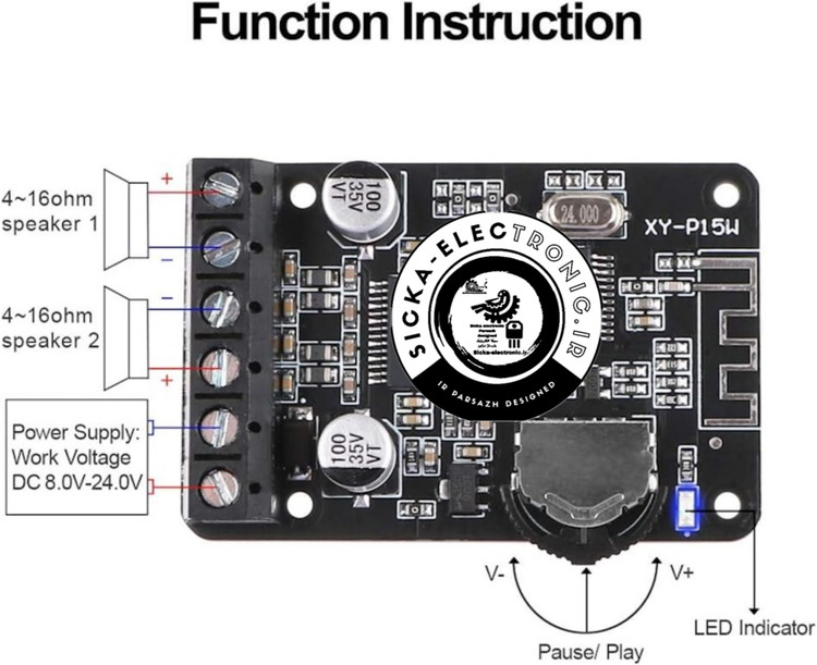 این ماژول صوتی استریو یک آمپلی فایر دیجیتال دو کاناله استریو با توان خروجی 20 وات می باشد. خروجی صدای این ماژول از کیفیت خیلی خوبی برخوردار است و در ساخت این ماژول از قطعات با کیفیت عالی استفاده شده است.