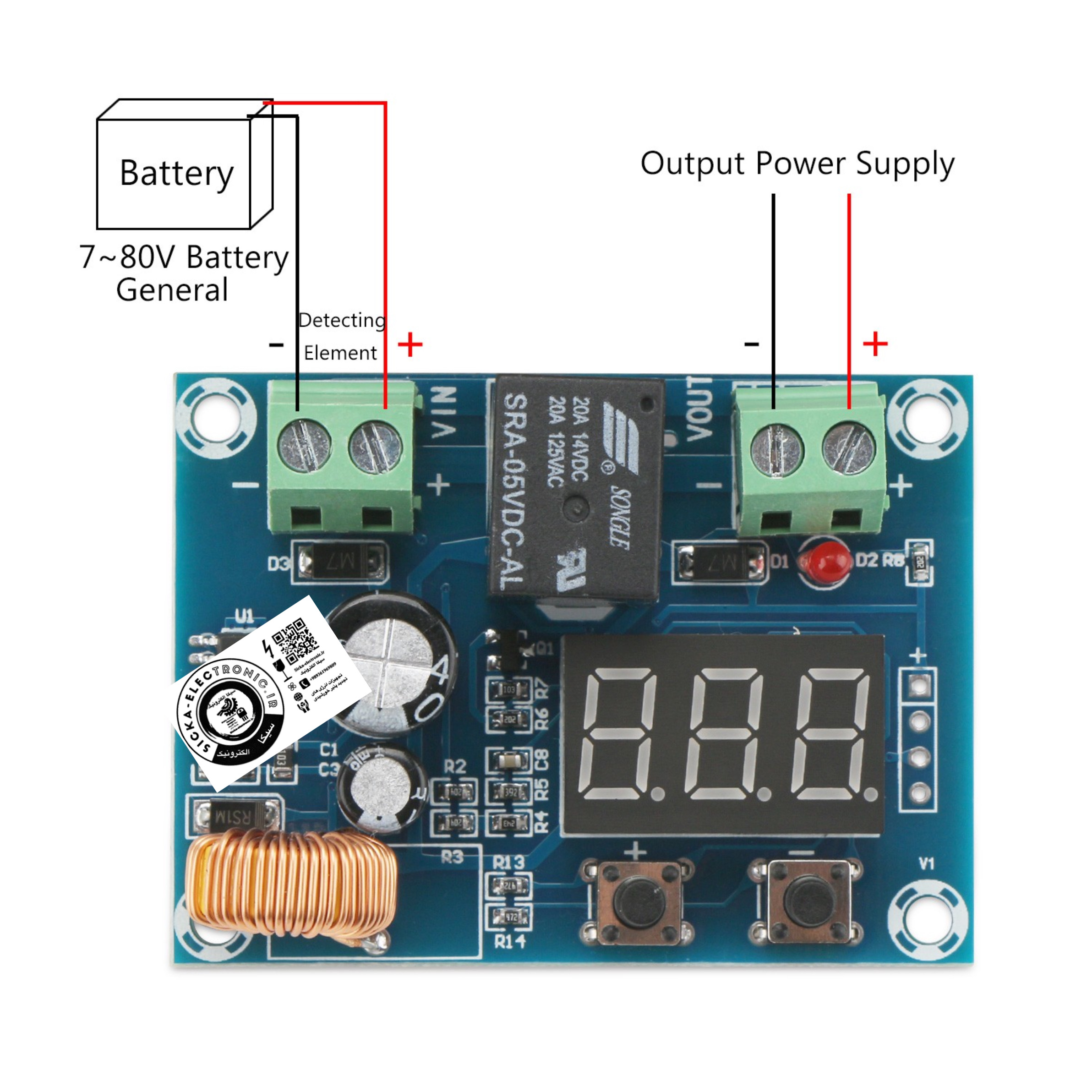 ماژول محافظ و کنترل دشارژ باتری ۸ الی ۸۰ ولت نمونه دیجیتال و قابل تنظیم مناسب کنترل دشارژ انواع باتری اتومبیل و باتری UPS و باتری لیتیوم /نمونه با کیفیت با رله ۲۰ آمپری