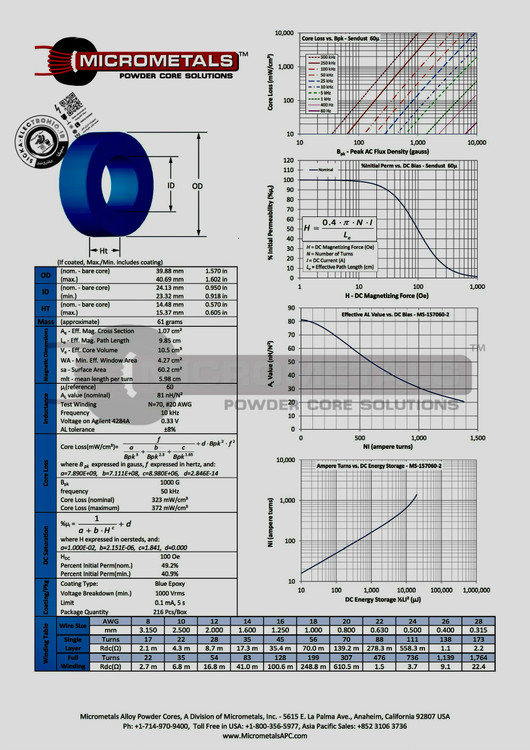 هسته سلف با روکش اپوکسی سری آبی رنگ (معروف آرنولد امریکا(تولید چین)) /مناسب خروجی اینورتر سینوسی خالص سایز ۴۰ میلی متر سری high power اورجینال و جینی با کیفیت بالا /هسته سلف آبی کیفیت بسیار بالا/ مناسب ساختن سلف اینورتر سینوسی خالص و آمپلی فایر کلاس D پرتوان ،نویزگیر آسانسور و...