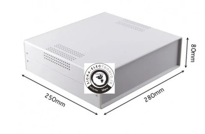 باکس الکترونیکی فلزی با پنل پلاستیکی سیکا (سفید یا مشکی با توجه به موجودی) سایز ۲۵ سانتی متر در ۲۸ سانتی متر در ۸ سانتی متر /کیفیت بسیار خوب رنگ و تولید /باکس مناسب اتواع پروژه های الکترونیکی،منبع تغذیه،آمپلی فایر،اینورتر،تغذیه و ...