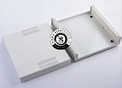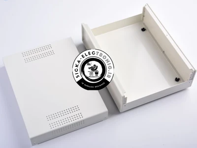 باکس الکترونیکی فلزی با پنل پلاستیکی سیکا (سفید یا مشکی با توجه به موجودی) سایز ۲۵ سانتی متر در ۲۸ سانتی متر در ۸ سانتی متر /کیفیت بسیار خوب رنگ و تولید /باکس مناسب اتواع پروژه های الکترونیکی،منبع تغذیه،آمپلی فایر،اینورتر،تغذیه و ...