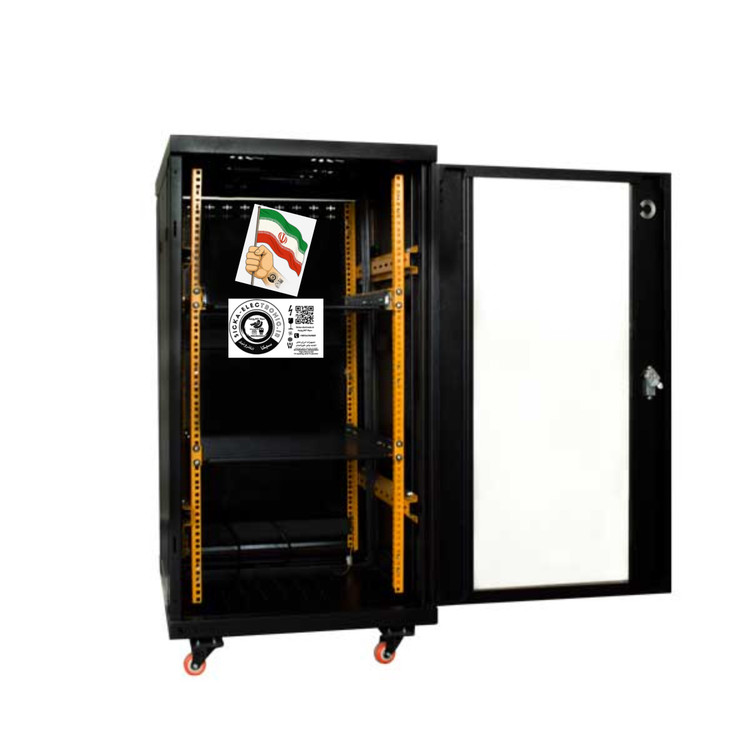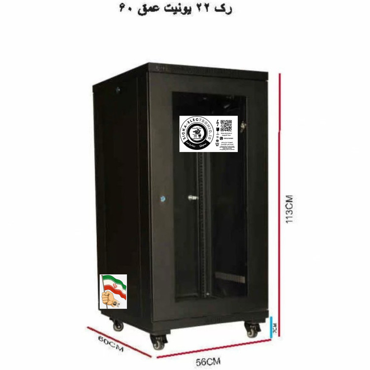 رک شبکه و باتری زمینی و چرخ دار 22 یونیت عمق 60 /چهار درب جدا شونده و ستونهای داخلی فلزی با میفیت جهت نصب ،درب جلو شیشه و فلز و قفل دار برای هر درب