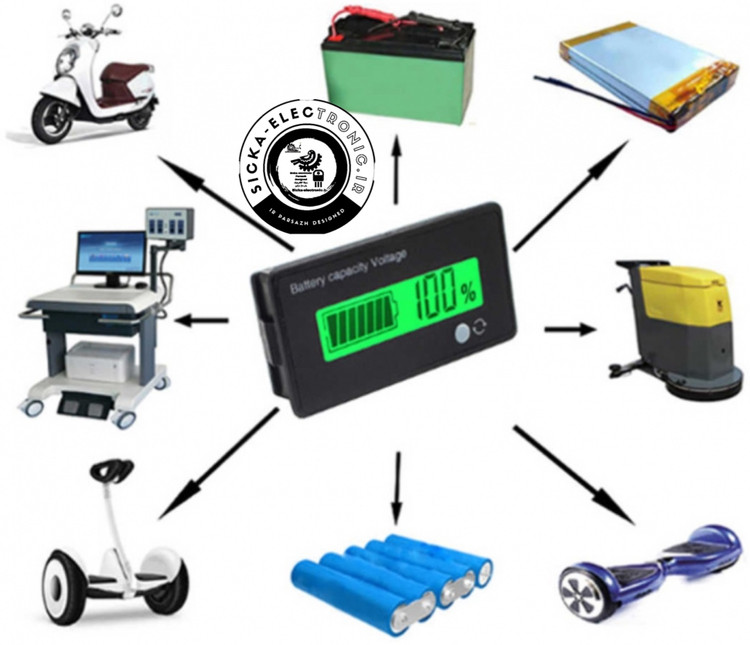 این ماژول برای اندازه گیری میزان شارژ با دقت مناسب، برای انواع باتری های لیتیومی و لید اسید کاربرد دارد، در محدوده ولتاژ 8 تا 70 ولت کار میکند و دارای یک نمایشگر LCD بوده که مقدار ولتاژ را مانند یک ولتمتر دقیق و درصد شارژ باتری را با توجه به نوع باتری، به دو صورت عددی و لوگوی باتری نمایش می دهد.