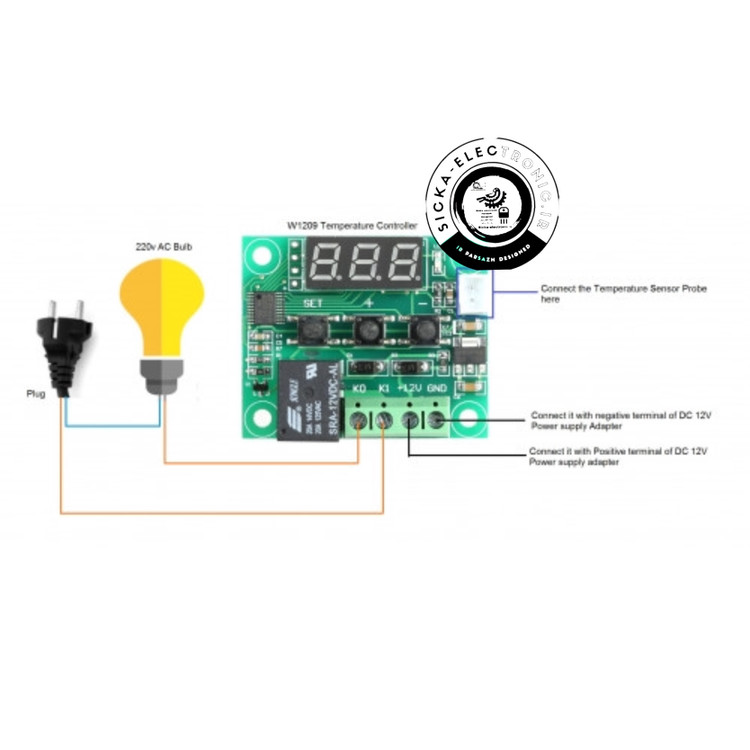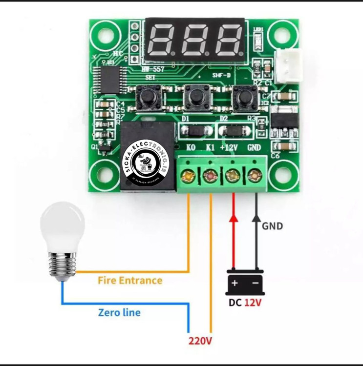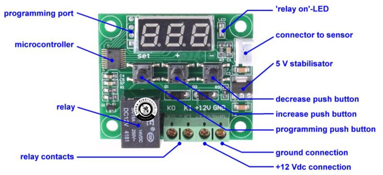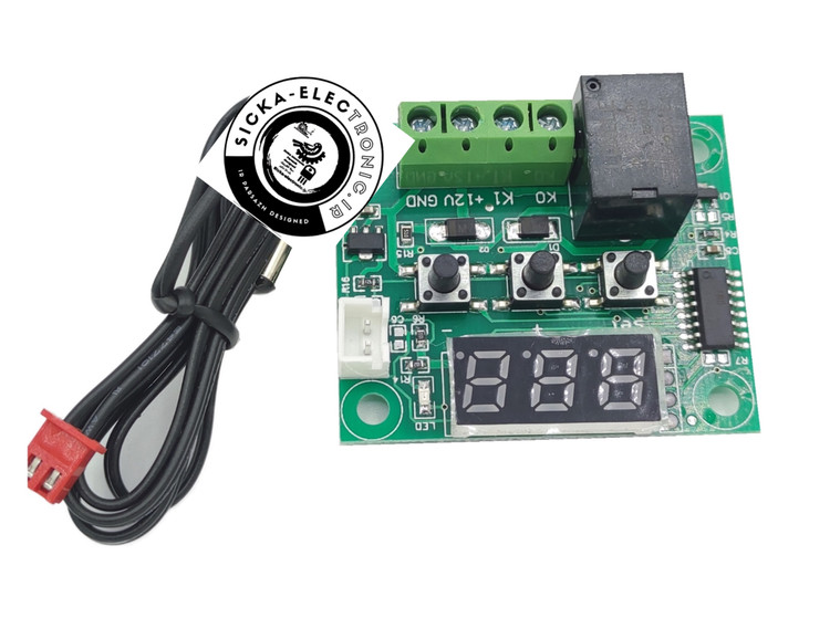 ماژول کنترلر دمای دیجیتال یک ماژول کنترل دما با قابلیت تنظیم بیشینه و کمینه دما می باشد. این ماژول دارای رله با جریان 20A آمپر می باشد که با آن می توانید به راحتی خیلی از دستگاه های برقی همانند کولر را کنترل نمایید. توسط کلیدهای قرارگرفته بر روی برد دستگاه می توانید حداقل و حداکثر دما را تنظیم کنید و رله خروجی را با توجه به تنظیمات انجام شده خاموش و روشن نمایید.