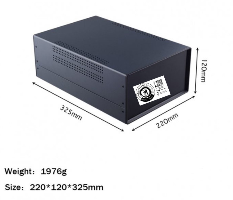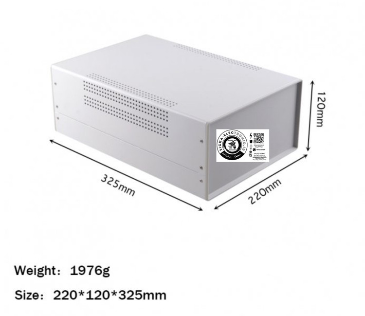 باکس فلزی با رنگ کوره ای و پنلهای پلاستیکی سایز بزرگ مناسب پروژه های الکترونیکی مثل اینورتر،شارژر،تغذیه و آمپلیفایر /کیفیت بالا(فلت و بسیار با کیفیت) سایز کلی محصول ۲۲۰*۱۲۰*۳۲۵ میلی متر