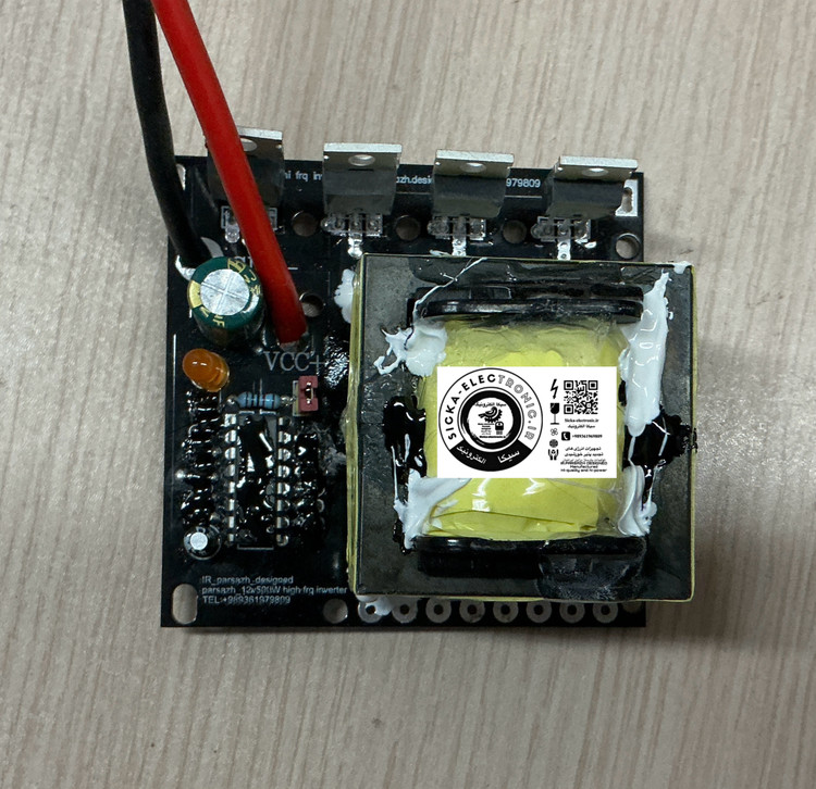 برد و ترانس با چسب سیلیکون ایزولاسیون و محکم شده جهت حفظ ایمنی و محکمتر بودن ترانس فرکانس بالا تا بهره وری و ایمنی بهتر به مشتری ارائه شود.