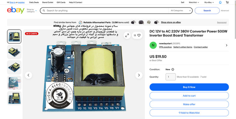 ماژول اینورتر-کانورتر ولتاژ (مبدل) ۱۲ ولت DC باتری به ۲۲۰ و ۳۸۰ و ۱۸ ولت با توان 550 وات تولید پارساژ دزاین (خروجی فرکانس بالا)