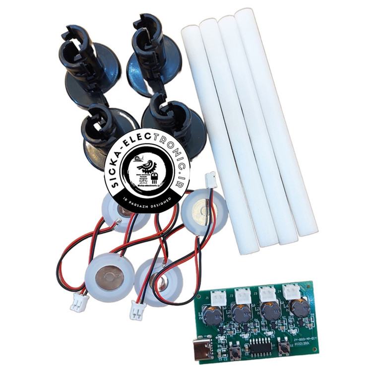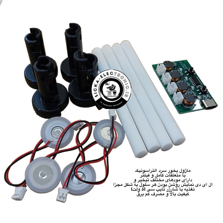 ماژول تبخیر سرد/ماژول التراسونیک/بخور سرد/ماژول تولید بخار سرد با ورودی تغذیه USB-Type-C و 4 عدد سنسور آلتراسونیک 16 میلیمتری و متعلقات کامل با مودهای مختلف (نمونه با کیفیت)