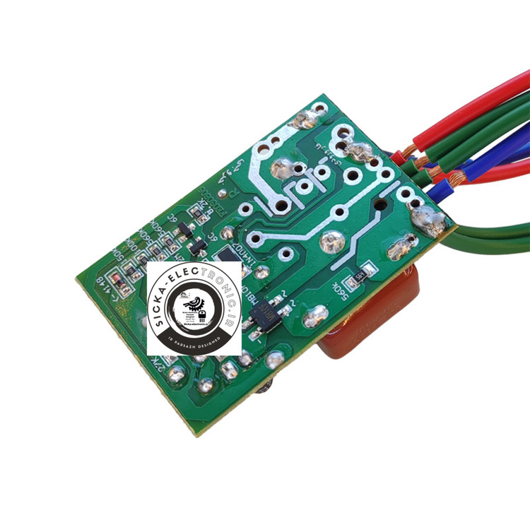 سپس فاز ورودی (سیم قرمز) و نول مشترک (هر یک از سیم های سبز) را به برق شهری متصل کنید.