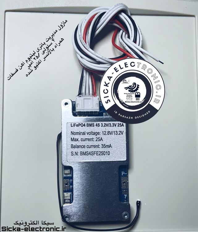 ماژول مدیریت شارژ و بالانسر اکوال باتری لیتیوم آهن فسفات چهار سلولی ۱۲ ولت(۱۲.۸ ولت)۲۵ آمپر بسیار با کیفیت/تهیه شده برای سفارش پروژه های پارساژ دزاین/lifepo4 bms
